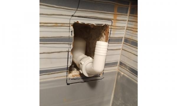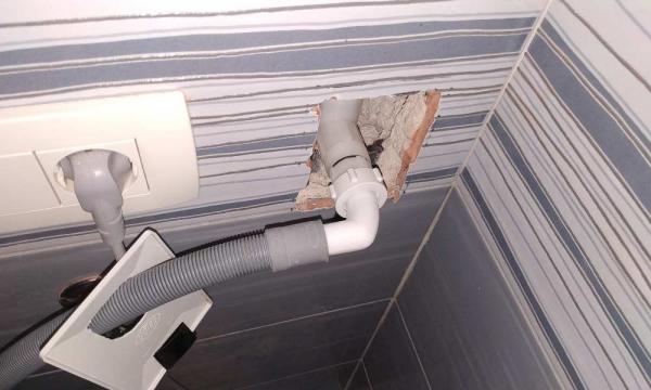 - Opis reference Tipična situacija počenega navoja sifona odtoka pralnega stroja. Ker so vsi sifoni plastični se nemalokrat zgodi da pri menjavi pralnega stroa navoj sifona poči. Bodisi zaradi sprva preveč zategnjene matice kolena ali pa je stroj postavljen preblizu sifona in se sčasoma nasloni na koleno sifona. Ker je običaj, da sifon dobesedno zazidajo in čez nalepijo ploščico ter pustijo samo odprtino za koleno. V tem primeru smo odrezali ploščico v velikosti rozete, nato pa je potrebno izbiti ves beton okoli sifona, tako, da smo lahko odstranili star sifon. Namestili smo nov sifon in odprtino prekrili z rozeto. Tako ni vel puščanja vode in ker je sedaj sifon samo prekrit z rozeto bo stranka v primeru poškodbe ali zamašitve sifona lahko zamenjala sama.