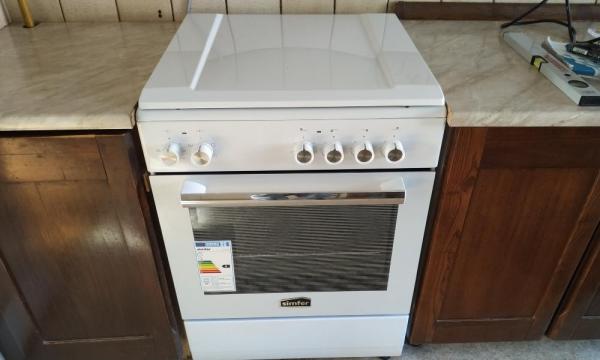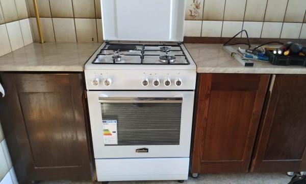 • Opis reference Gospe Ivanki smo zamenjali star štedilnik za novega, kombiniranega znamke Simfer. Da smo lahko odklopili stari štedilnik smo morali razstaviti improvizirano omarico na levi strani štedilnika. Odklopili smo plinsko cev ter elektriko. Štedilnik je bil priklopljen preko vtikača na vtičnico. Nov štedilnik smo priklopili na plin, ter na električni kabel namestili vtikač. Ker ima štedilnik direkten priklop smo pazili, da nismo zamenjali električnih polov, kajti v nasprotnem bi prišlo do kratkega stika. Štedilnik smo še preizkusil, prav tako tesnenje plina in zaključili z montažo. Čas menjave 1 ura.