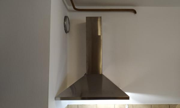 Ker je imela gospa prazno steno nad štedilnikom, sama montaža ni bila zahtevna. Edini problem je bila vtičnica, ki je bila prav na mestu, kamor naj bi bila montirana napa. Vtičnico smo odstranili in napo namestili tako, da smo lahko naredili zunanji električni priklop, ki je skrit v samem dimniku nape. Tako smo težavo rešili tako s praktičnega, kot tudi estetskega vidika. Po priklopu nape na električno omrežje, smo namestili še dimnik, kateri je na vrhu zaprt, tako da prečiščen potuje nazaj v prostor skozi rešetke na levi in desni stran dimnika. Po končani montaži smo napo preizkusili, pospravili za sabo in zaključili z montažo. Čas montaže ca. 1.5 ure.